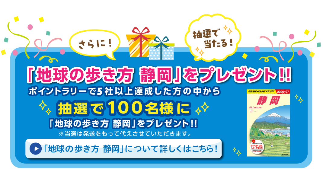 ★「地球の歩き方 静岡」プレゼント企画の当選者の発表は、賞品の発送をもって代えさせていただきます。